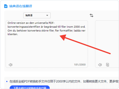 进入瑞典语在线翻译页面,输入或者粘贴待翻译的瑞典语内容